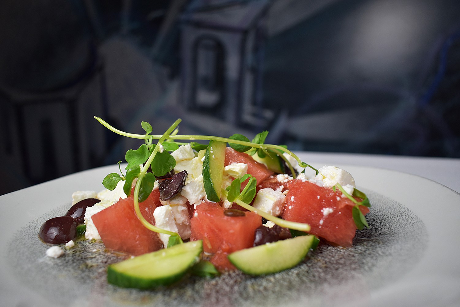 Prime Steak + Tzatziki + Onions + Tomatoes + Cucumbers + Feta + Arugula + Mini Pita + Mustard Drizzle + Ladolemono