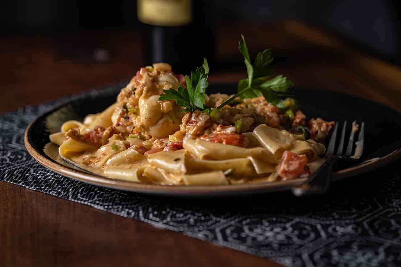 Lobster + Leeks + Tomatoes + Chilli Flakes + White Wine Cream Sauce